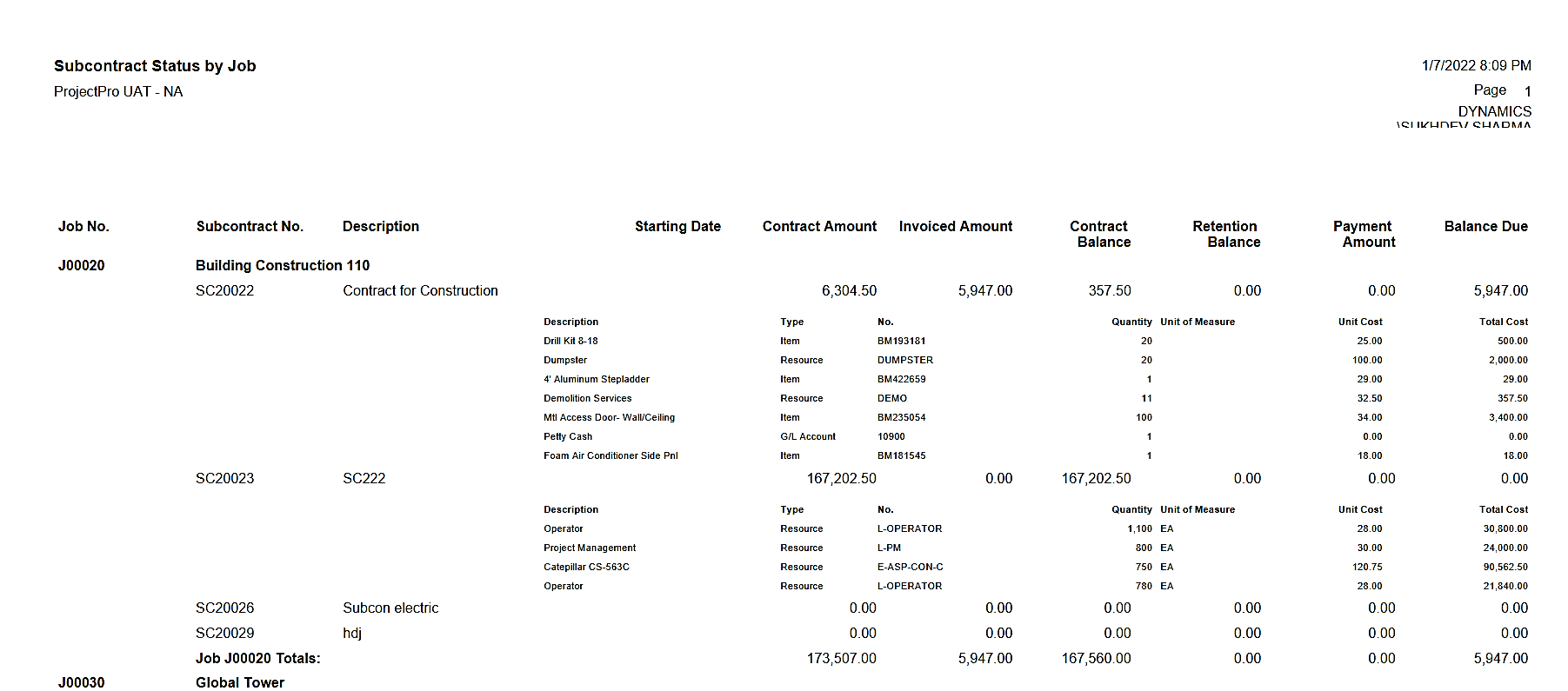 ProjectPro on Microsoft Dynamics 365 Business Central provides the  best construction project management solutions  for tracking and managing subcontractors for projects.  Users can manage subcontractor contracts, change orders, work performed, retention values, lien release waivers, pay-when-paid, and compliance documents such as certificates of insurance.