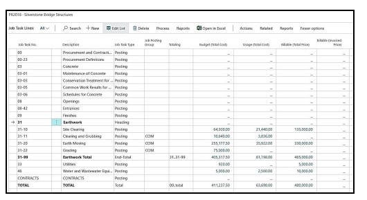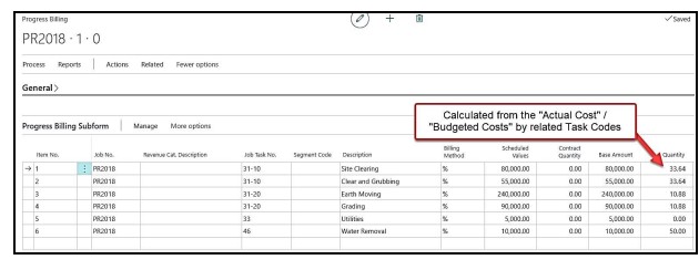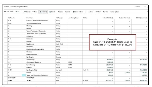 In this example we are using the following Job Task values to compute the billing percentage of Job Tasks: