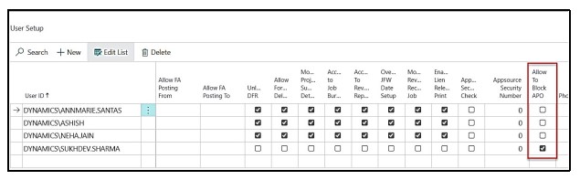 In user Setup, if the Boolean of “Allow to Block APO” is selected for the user, system will allow only then to block the APO codes