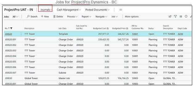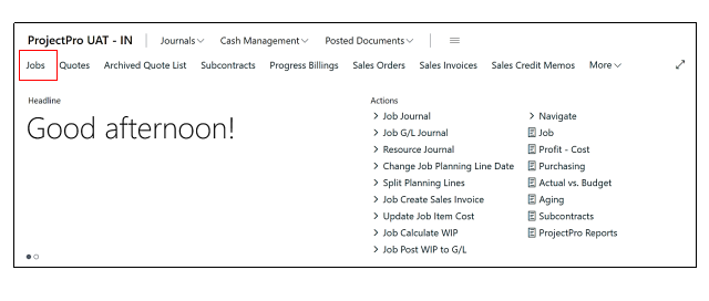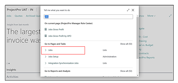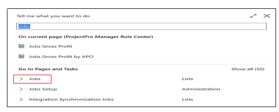 1 – The user must click on the Jobs on the Role Centre Page, or he can also search the same in the Global Search option and click on the result.
