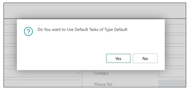 This means that if we want to choose the yes then system will generate the default task Lines which are already saved in the setup and if we click on No then we have to define the Tasks manually, once we click on Yes then the Default task Lines will be created automatically.