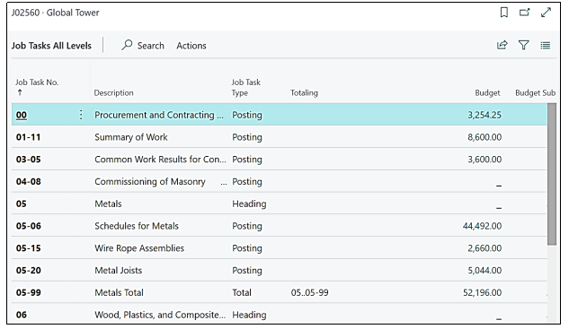 When we Click on “Job Task Totals” “Job Task all Levels” page will open showing the totals of all the inclusive Task totals.