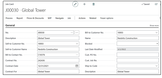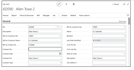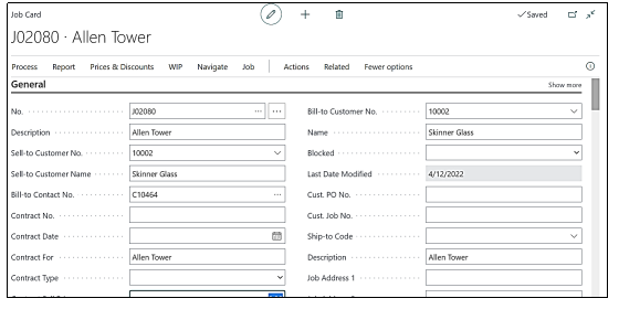 From the Job card, you can view statistics, Job ledger entries, contract information, resource and resource group availability and allocations.