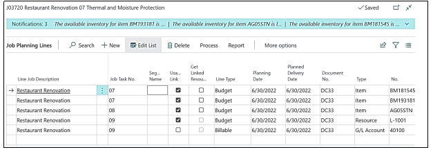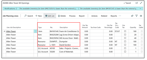Now we will check the “Planning Lines” of this “Job”, earlier there were no “Planning Lines” in this “Job” and when we open the “Planning Lines”, we notice that the “Planning Lines” which we had created in “Job – J02080” has been copied in this “Job”.