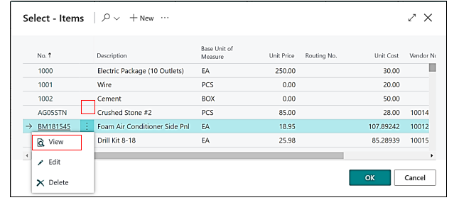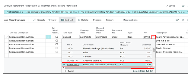 So if the User wants to link the “Resource” with any of the three “Item” he need to open the “Item Card” from the “Planning Lines” and link the resource on the “Item Card”, to go to the “Item card” from the “Planning Lines”, user must click on the Item selected→drill down option needs to be opened→select from the full list.