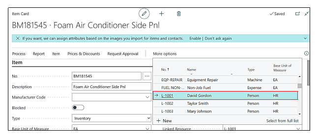 Item card will be opened, then Under the “Item Tab” there is an option of “Linked Resource”, user need to drill down in the “Linked Resource” field, then the Resource List will be opened and to select any Resource we have to click on that resource and then in the Field of Linked Resource that Resource will get added.