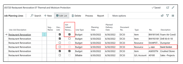 Now user need to go back to the “Planning Lines” and click on the “Linked Resources” Check “Box field” to populate the “Linked Resources”