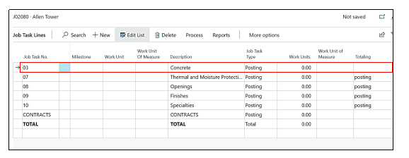 When we check the “Task Lines”, we see that the Additional “Task Line” which is “03-Concrete” has been copied successfully.