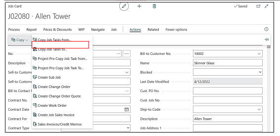If a user wants to copy the Job Tasks and the Planning Lines from and to any job then the user must click on a particular Job from which the Job Tasks need to be copied to another Job.