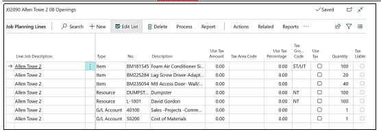 Now we must cross-check whether in “Job J02090”, the additional “Task Lines & Planning Lines” which we had added in Job have been copied or not, and for that, we will go to the “Job – J02090” and check the “Planning Lines” and “Task Lines”.