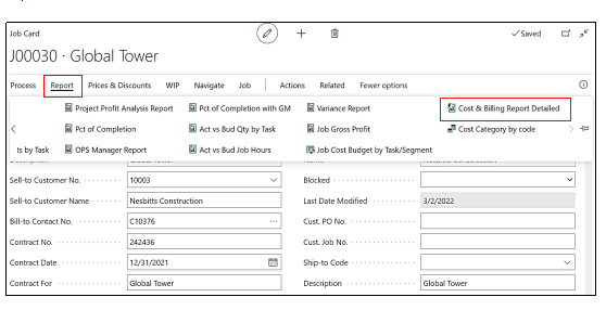 “Cost & Billing Report Detailed” on the Job Card