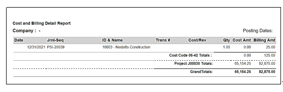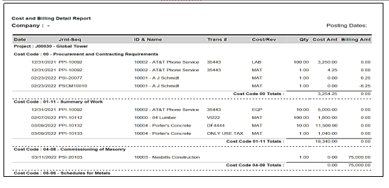 At the End of this report there are totals of all the Costs & Billings also.