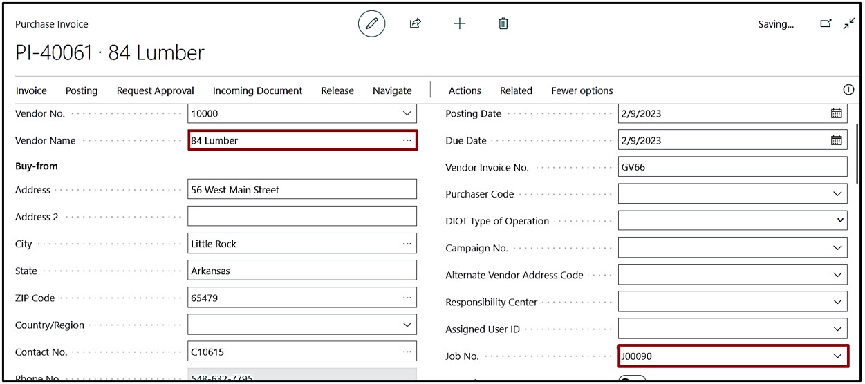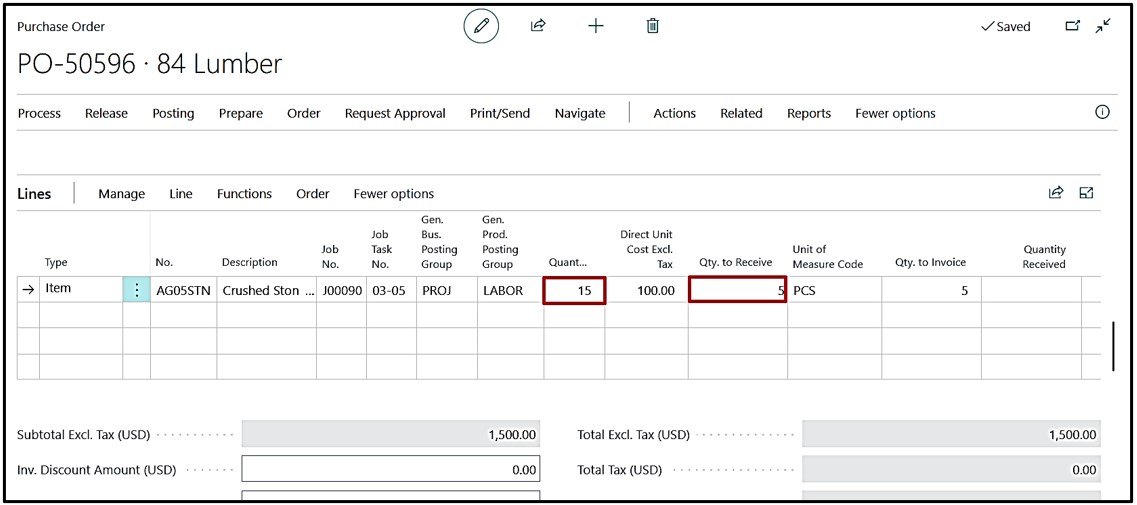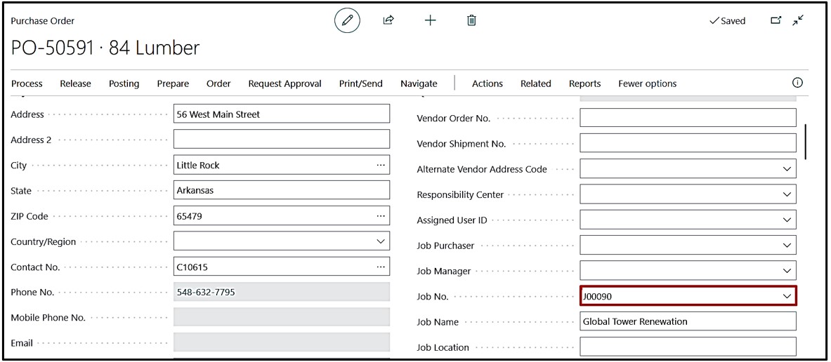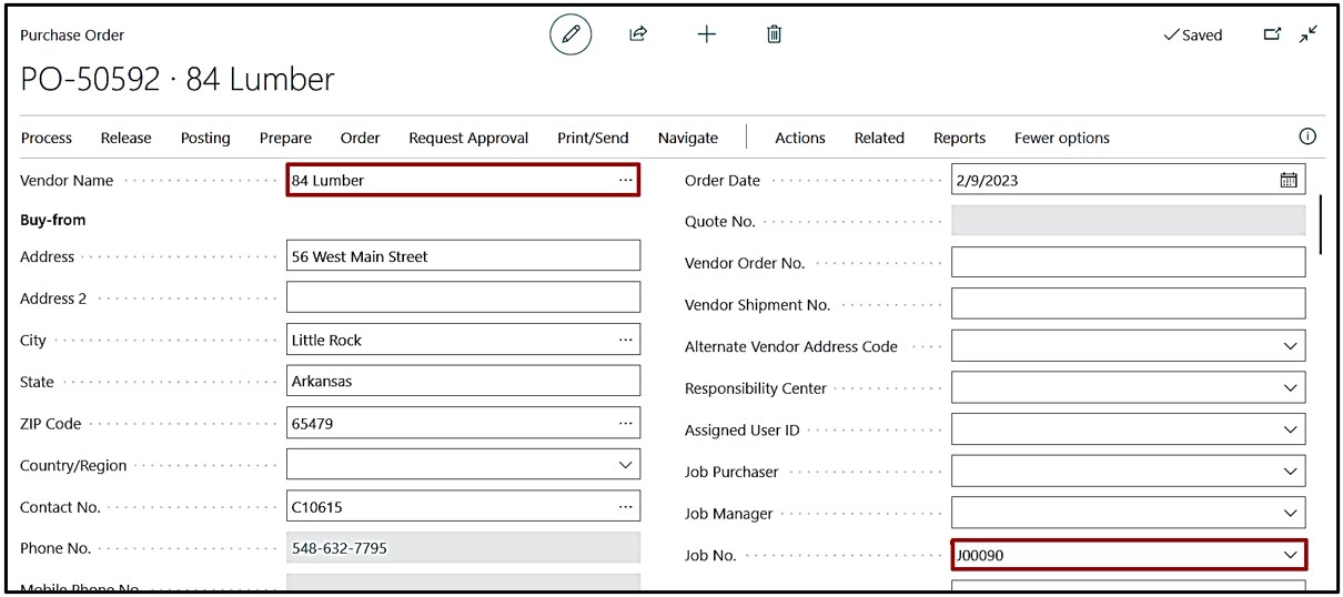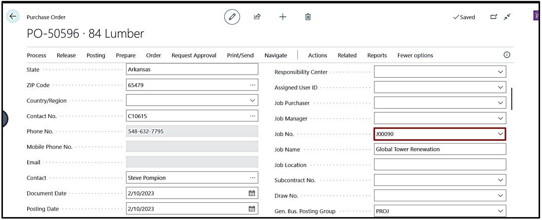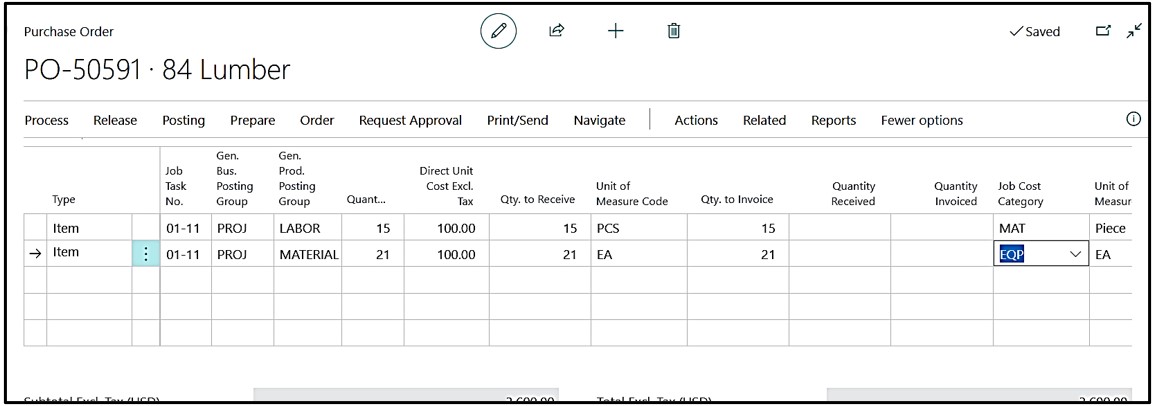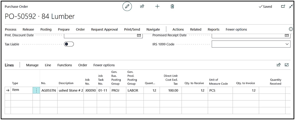 Create “Purchase Order” and select the Job No. on the Header of the Purchase Order.