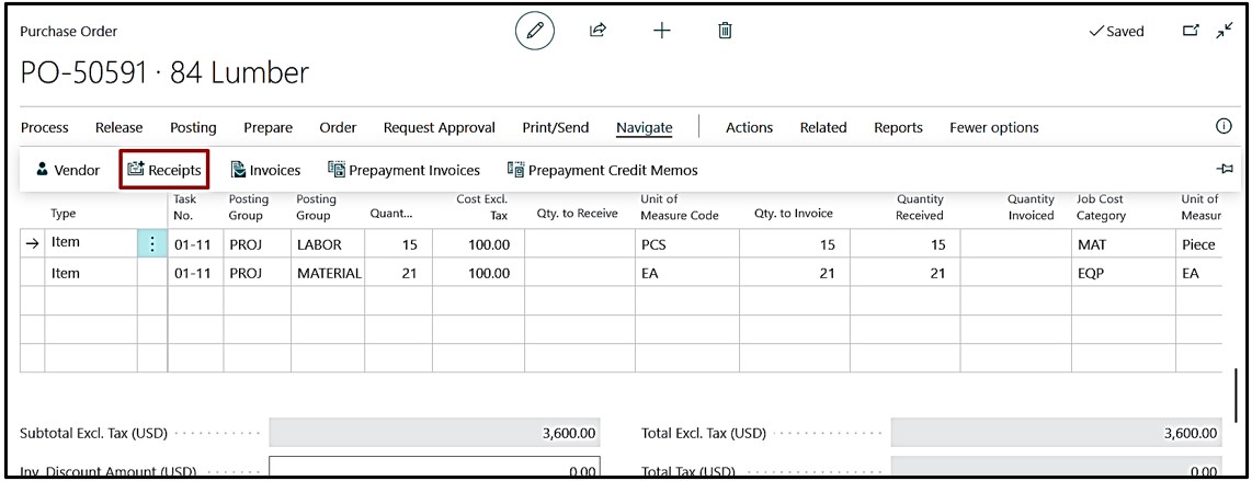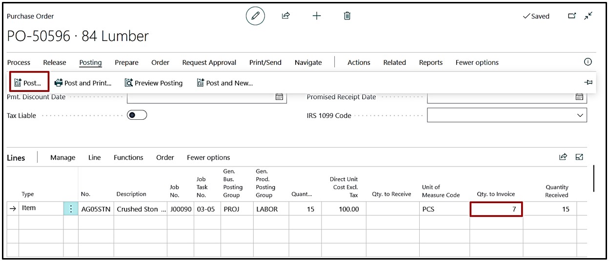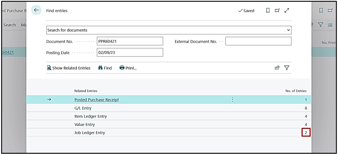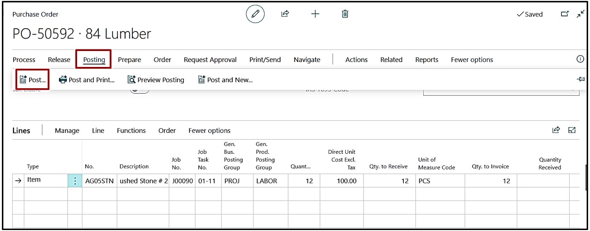 Once posting is done user can navigate from Purchase Order and Navigate the Job Ledger Entries created.