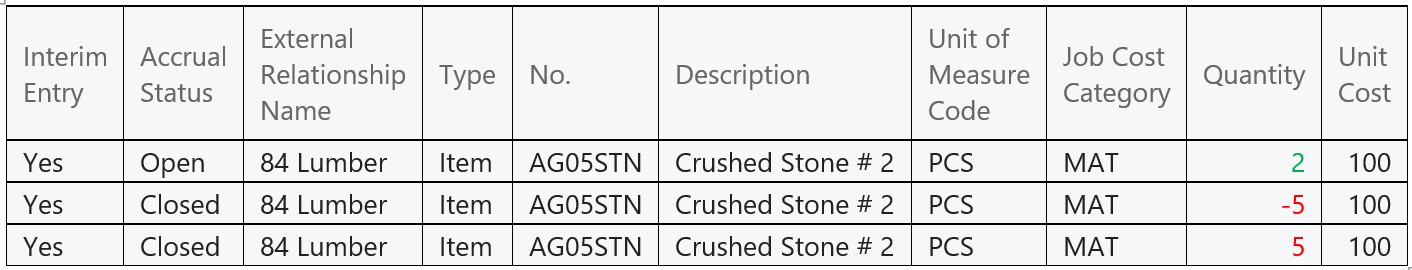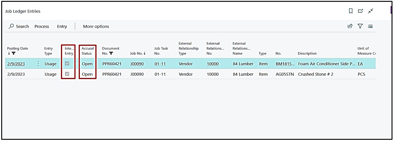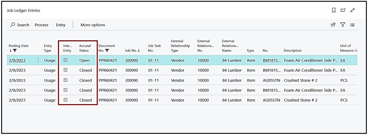 When we drill Down these Job Ledger entries then entries can be reviewed with the “Interim Entry” check mark as “True” and the “Accrual Status” as “Open”.