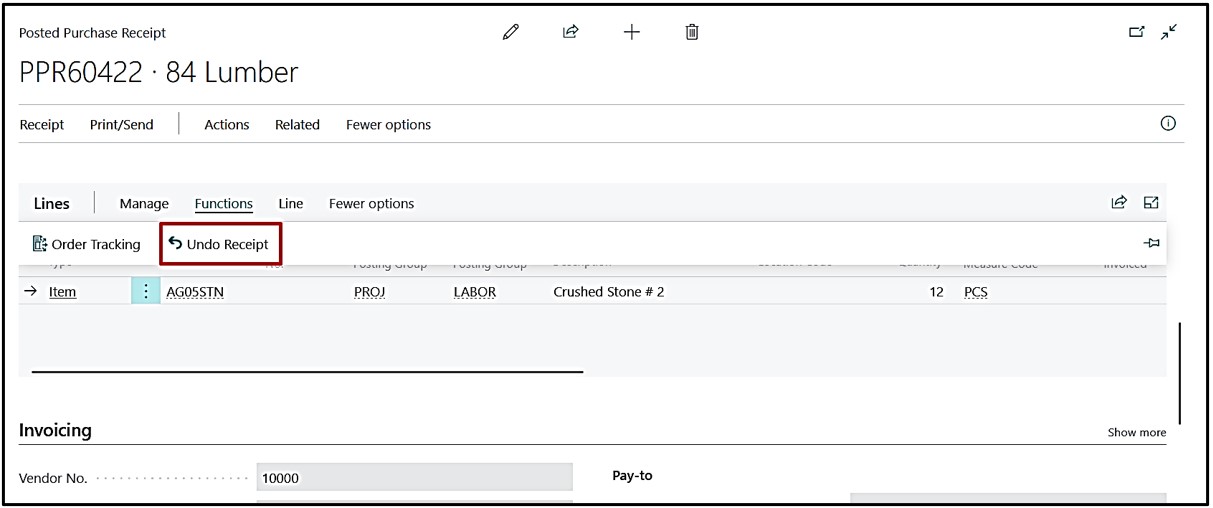 To undo receipt open Posted Purchase receipt and select Line & click on Function→Undo receipt.