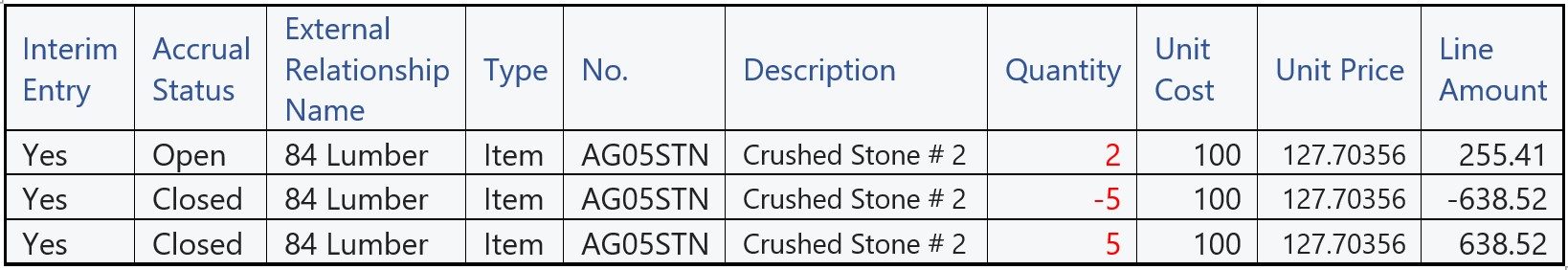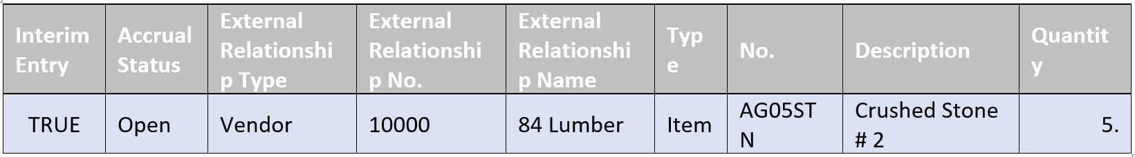 The Interim Entries for Partial invoice quantity been created with “Interim Entry” as True & “Accrual Status” as Open for Quantity as 5 which is partially received.