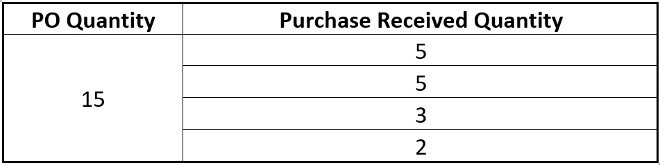 Now we will post the receipts on the same Purchase order in a pattern displayed below.