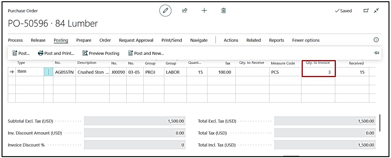 Now invoice 3 quantities and for that we need to click on the Qty to Invoice and mention 3 quantity there and post the invoice.