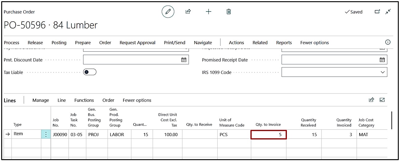 Now user can also opt to post Purchase receipt from Purchase Order single or multiple times. Further, from Purchase Order, user can opt to post Purchase Invoice for complete or partial quantity. If complete quantity, system will reverse interim entries & post Job ledger entries as per standard process. If partial quantity, system shall pick posted receipt on FIFO basis & last line of partial quantity shall be created. Same partial quantity line shall be considered for upcoming Purchase Invoice. User can notice process of knocking off the Interim Entries and creation of the new interim Entries for partial quantity.