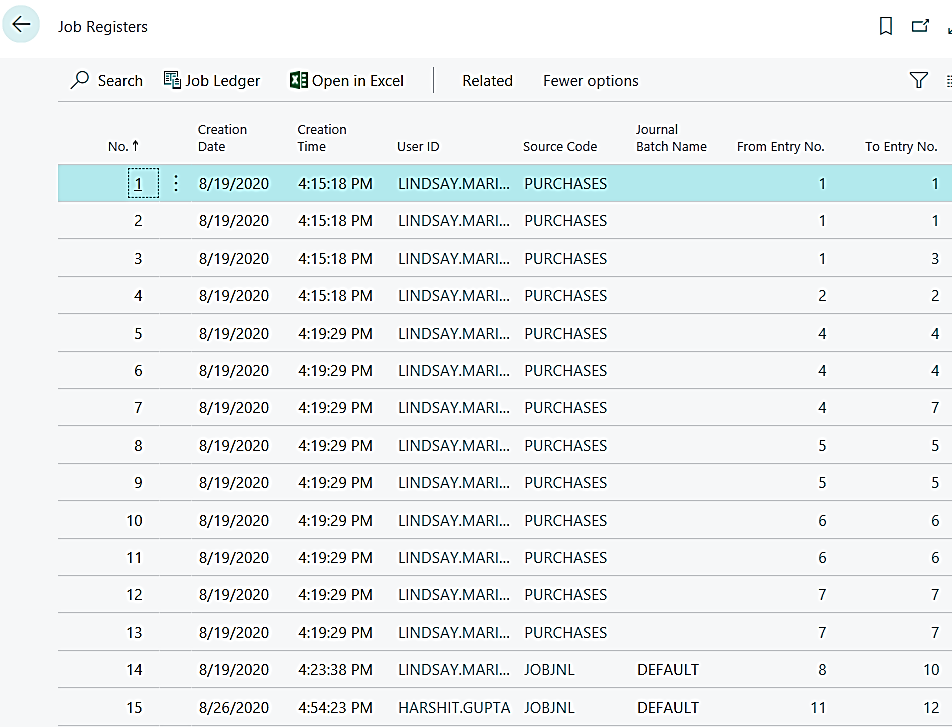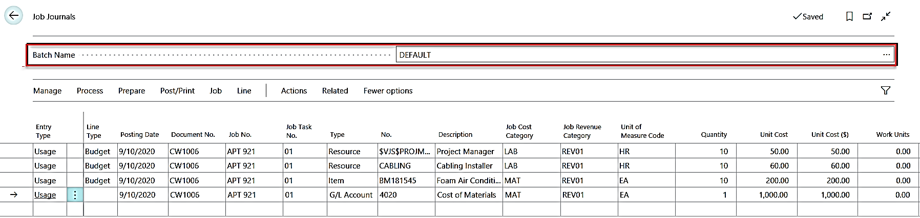 This will open the job journal batch with a specific Batch Name, see highlighted below.