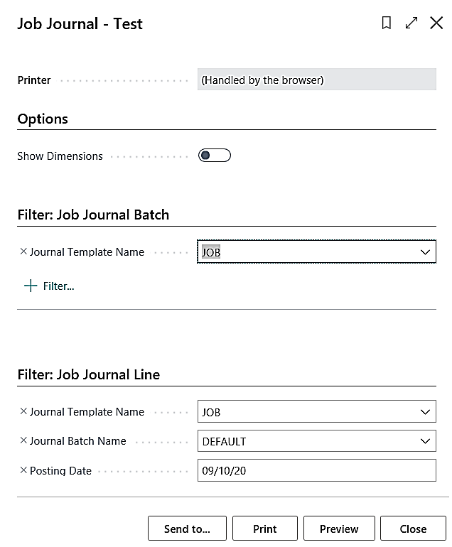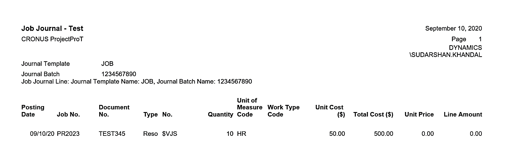This section describes the Test Report option in Job Journal. Click Actions → Posting → Test Report.