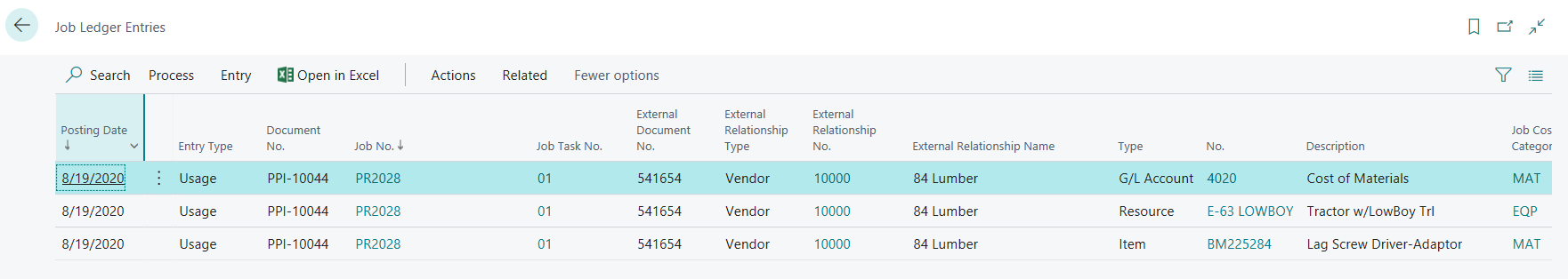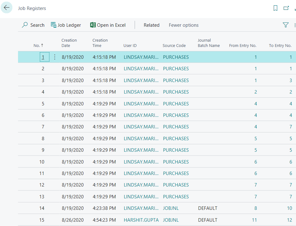 - From the Job Registers window, click Job Ledger to see individual entries.