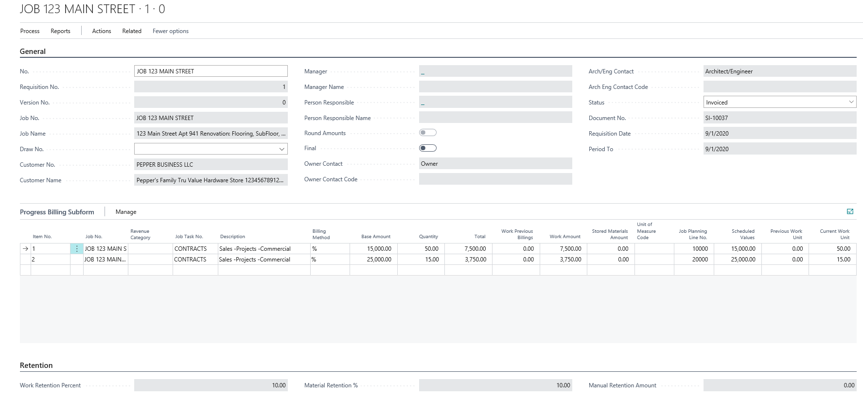 Material Retention % is normally set on the Retention Fast Tab as one percentage. AIA requires the ability to enable users to indicate on each line item a retention percentage for stored materials.