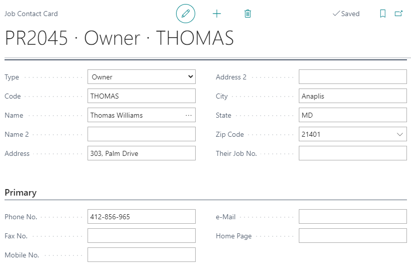 One you have selected the type of Contact that applies to this Job, then click on Job Contact button at the top of the screen. This will open the form to insert all the Contact Information.