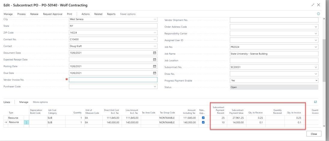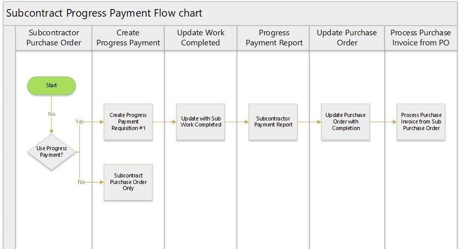 Progress Payments for your subcontractors is a method for tracking and approving what portion has been completed and a progress report for internal purposes or to send to your subcontract showing what has been approved for processing as a vendor invoice from the Subcontract Purchase Order.