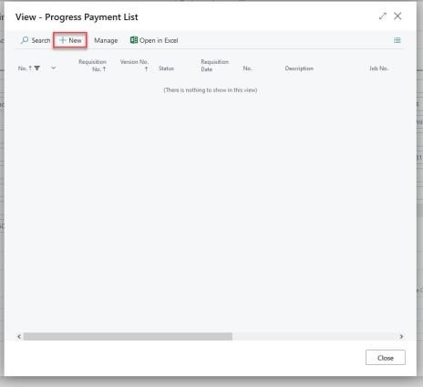 For your first Progress Payment, Select “New” from the Progress payment List window