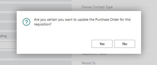 You will be prompted for confirmation that you would like to update the Purchase Order. Select “Yes