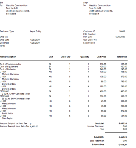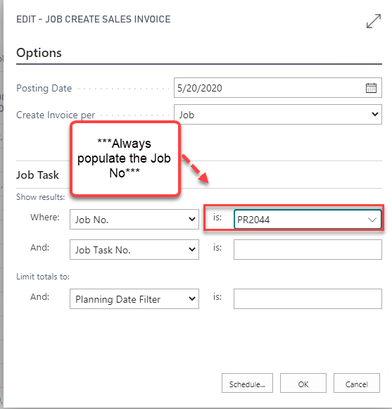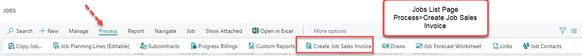 Note: Always enter Job Number when creating Sales Invoice from the Jobs List Page. If you do not, you will create Sales Invoices for all of your jobs.
