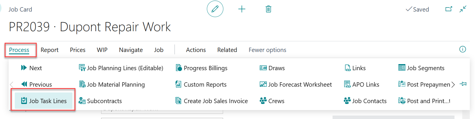 Once you have complated the Job Card setup, make sure to add the Job Task Lines that will be used on this job. If you have assigned default Job Tasks, you will see they have automatically populated with the new Job Card creation.
